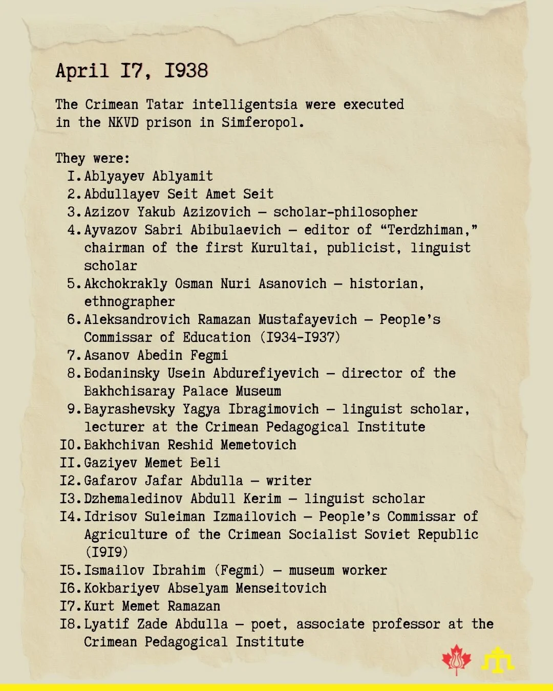The Canadian Association of Crimean Tatars (CACT) is a non-profit organization that unites the Crimean Tatar diaspora in Canada and promotes cultural preservation, human rights, and community advocacy.